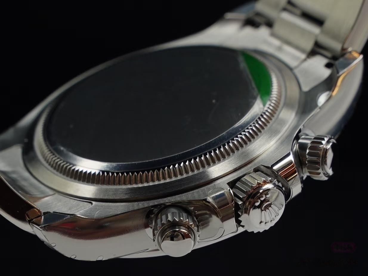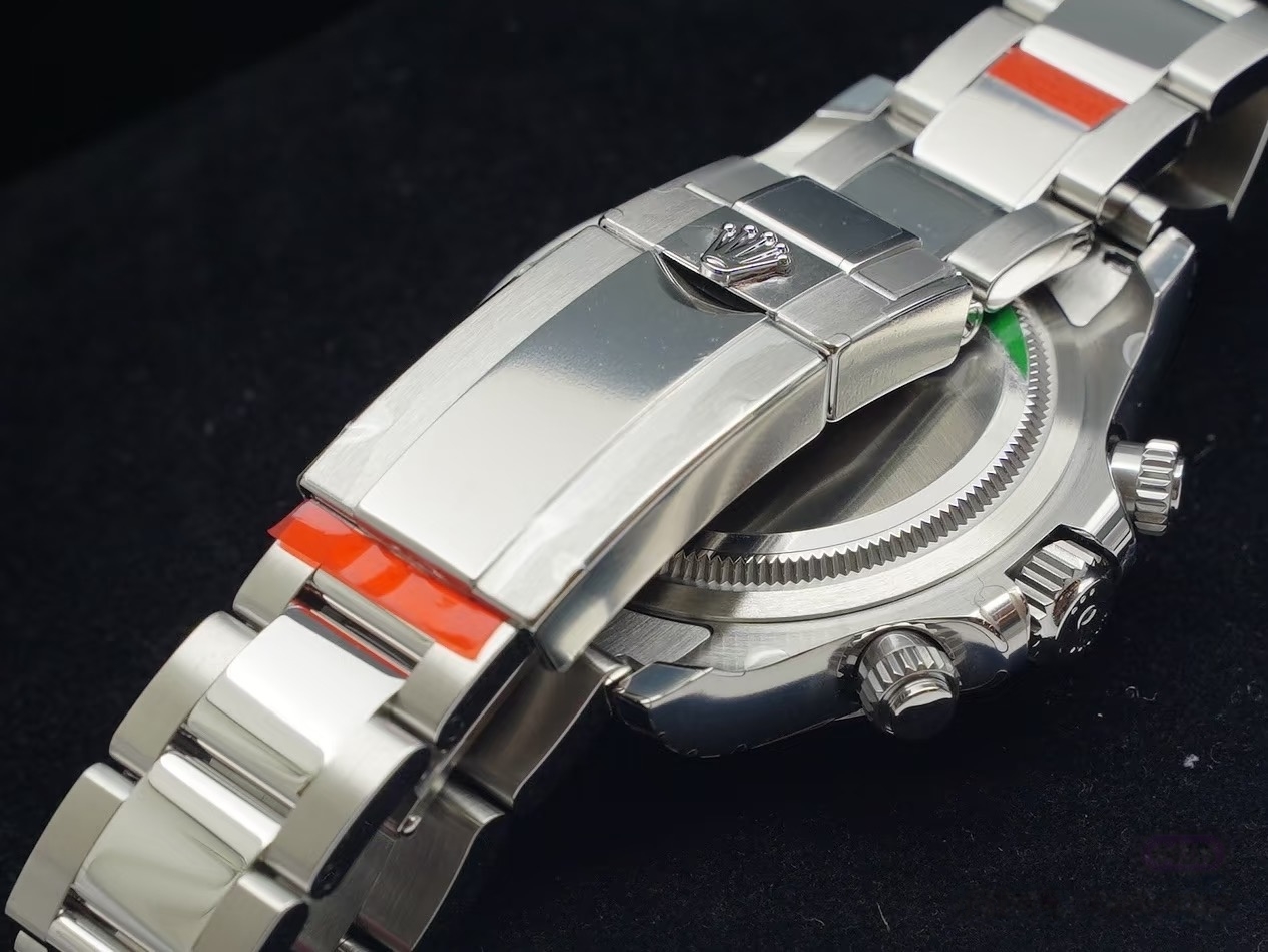 作为一枚专业计时码表,性能堪称“硬核”。内部搭载的4130型自动上链机芯,是劳力士自主研发的王牌机芯之一,不仅取消了传统计时码表的导柱轮和离合轮,改用创新的垂直离合系统,让计时启动时的手感更顺滑、零顿挫,更凭借Parachrom游丝与Paraflex缓震装置的加持,将抗磁性能与抗震性能提升到新高度。72小时的动力储存,满足日常佩戴无需频繁上链的需求,而每一枚机芯都经过劳力士天文台认证(COSC),确保在不同环境下都能保持精准走时,误差控制在每日-2至+2秒的严苛标准内。