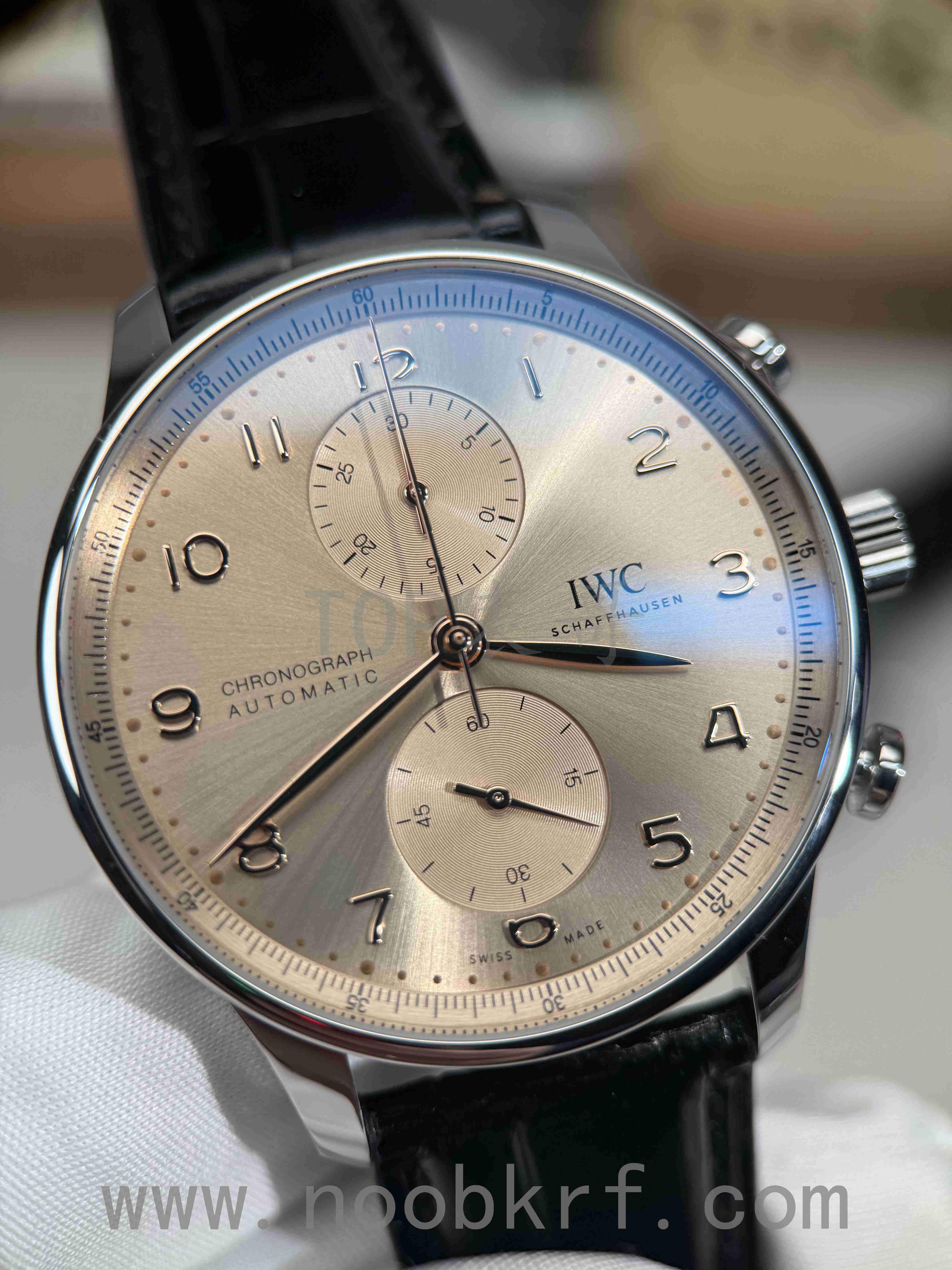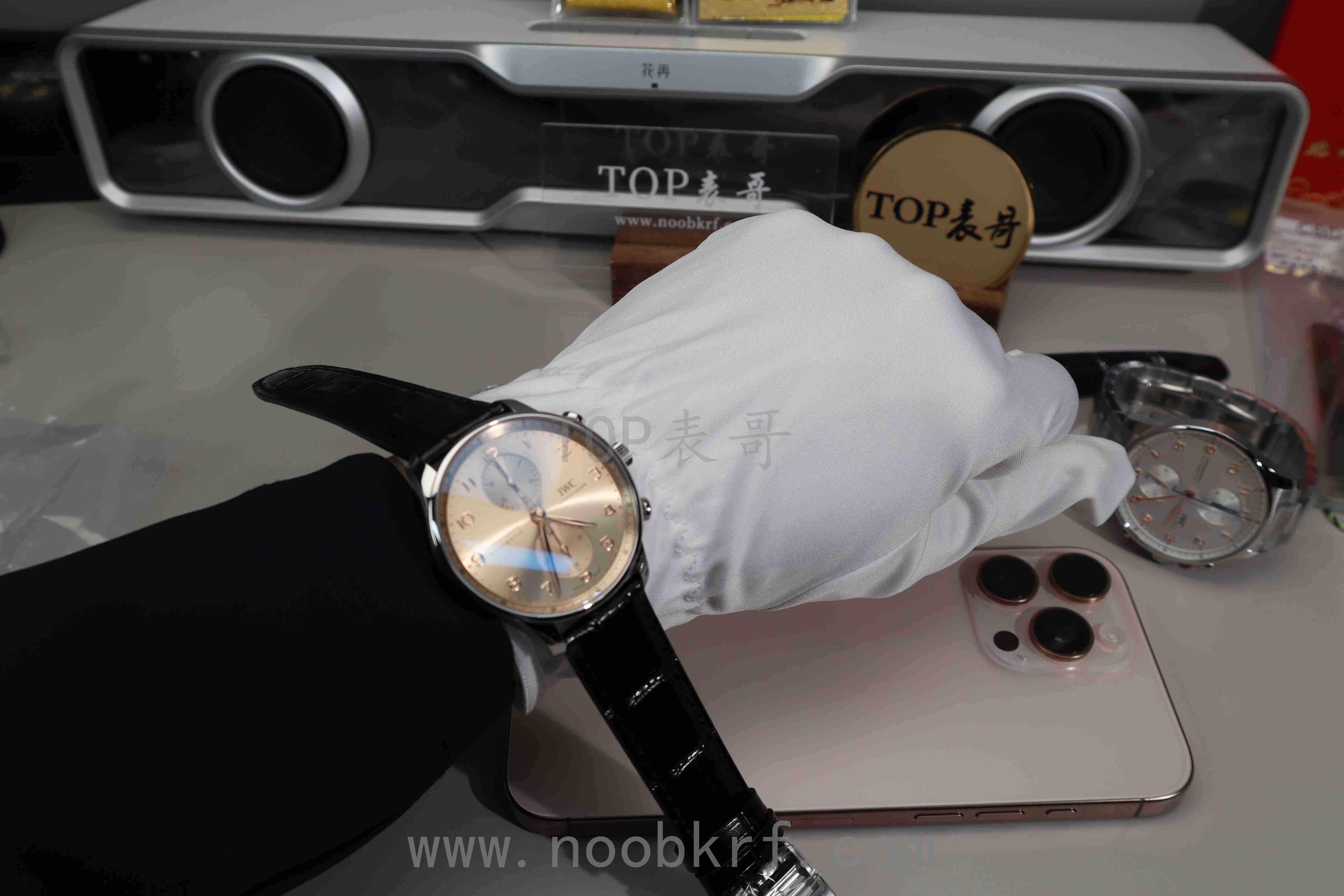 hello,大家好,我是TOP表哥,今天带给大家的腕表评测来自APS工厂的最新样板,万国新款葡萄牙计时系列腕表“沙丘金”,腕表官方型号:IWC万国表葡萄牙系列IW371624腕表。