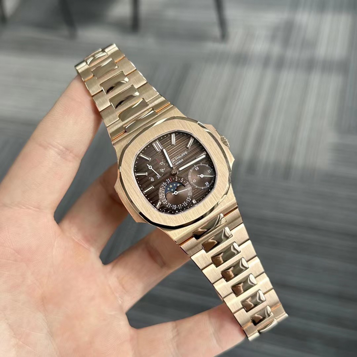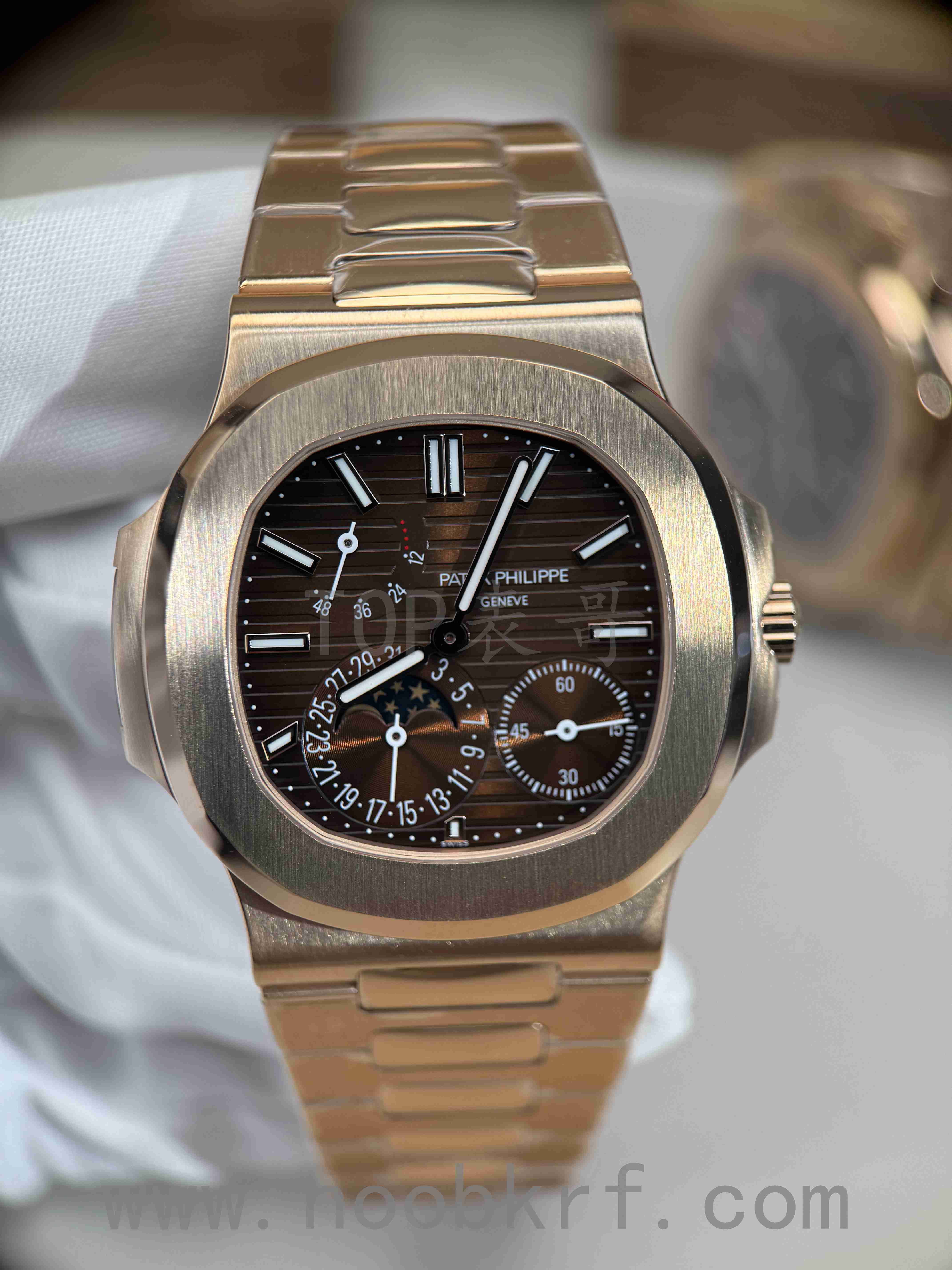 hello,大家好,我是TOP表哥,今天带给大家的腕表评测来自PPF工厂的百达翡丽鹦鹉螺5712R玫瑰金版本,腕表官方型号:百达翡丽运动优雅系列5712/1R-001腕表。