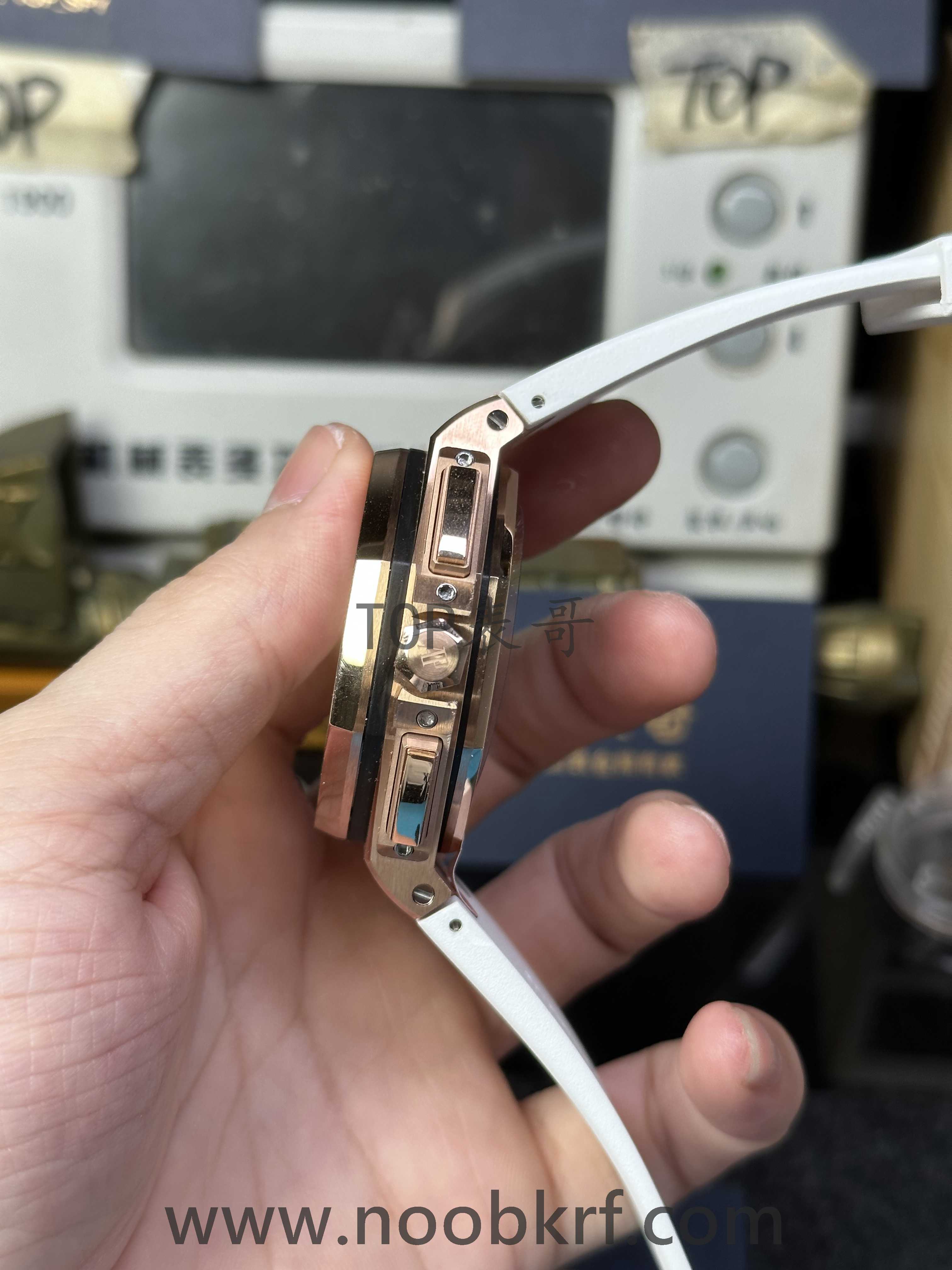 皇家橡树离岸26400表腕,“封顶之作 杜绝一眼假”在JF厂原有的基础上 潜心研发 突破壁垒 “打破原装封锁技术,同步原装独家计时码表款可松动头粒”使上手最大程度贴合手腕,大大提高了佩戴的舒适 同时也杜绝一眼假的尴尬处境。APF厂真正做到从每一个喜欢手的表友角度考虑 2.采用最新CNC级别的打磨技术,将整个表壳的个个角度完美处理,3.每颗六角螺丝都与表框处于同一平面上,不接受一丝一毫的凸显与凹陷,真正诠释了何为顶级复刻艺术 4.表盘以爱彼经典的大格纹为背景,层次分明的方格排列,经过完美打磨,将匠人的工艺体现的淋漓尽致 5.镜面采用双面蓝宝石镜片,天然橡胶皮带,6.机芯采用原装3126的计时机芯,十二位的小秒,6点钟位和九点位的12小时计时与30分钟计时,完美的还原了原版的所有功能,每块手表APF厂都经过人工QC确保机芯的稳定性,真正做到无可挑剔