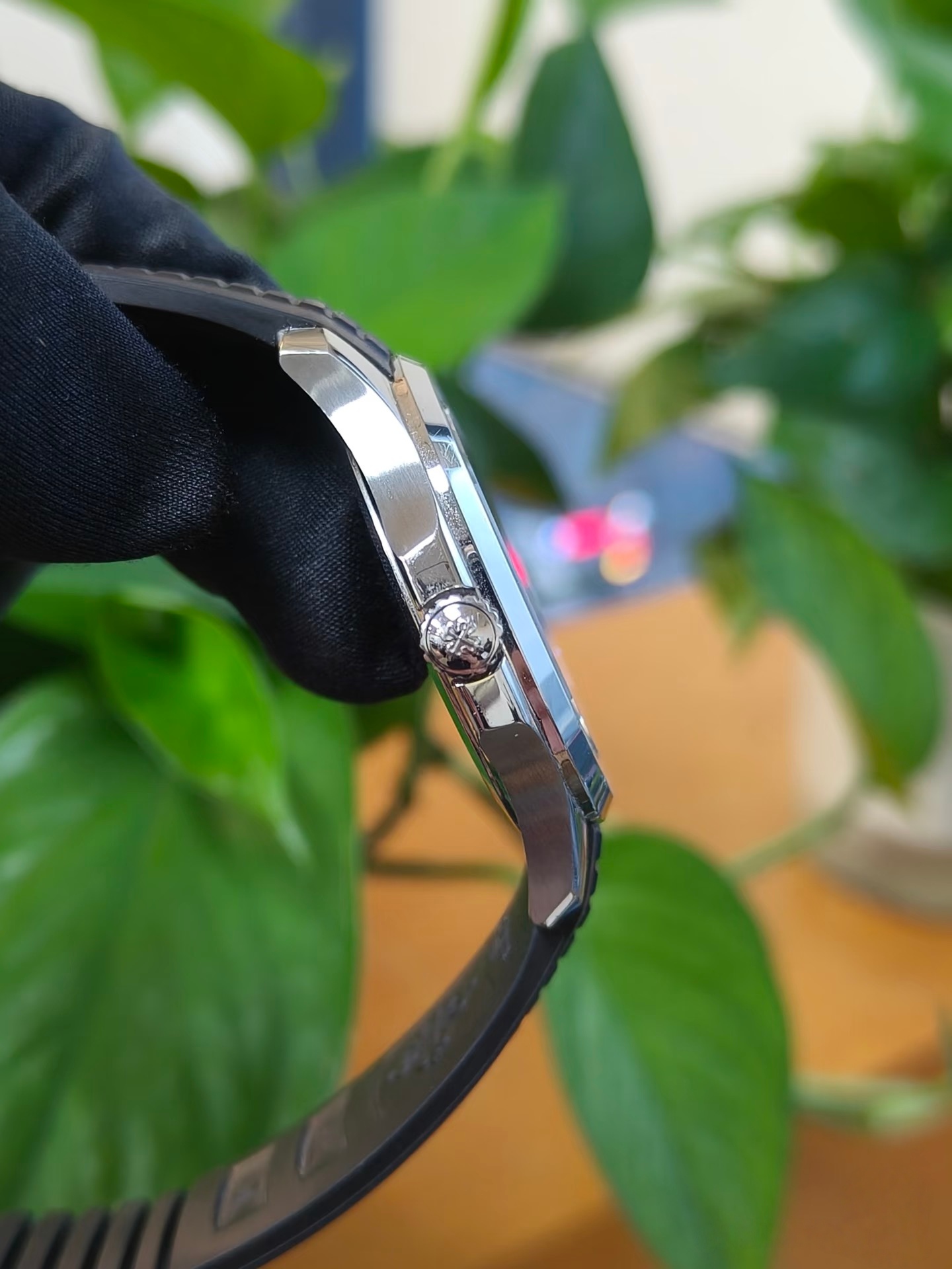 表壳设计:采用不锈钢材质,直径 40.8 毫米,厚度适中,约为 8.1 毫米或 9.5 毫米(不同资料略有差异)。圆润的八角形表壳设计,灵感源自百达翡丽著名的 Nautilus 系列,表壳线条流畅,兼具优雅与运动感。表冠印有百达翡丽标志,不仅美观,还保证了良好的密封性,助力手表达到 120 米的防水性能。