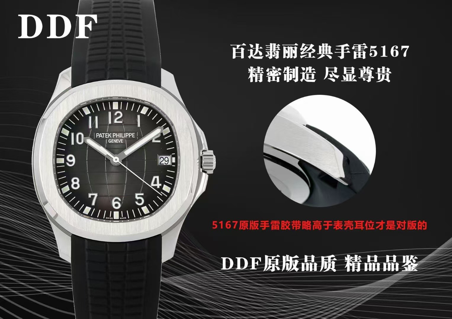 下面给大家详解一下DDF工厂的百达翡丽5167A黑手的表壳真假对比评测: