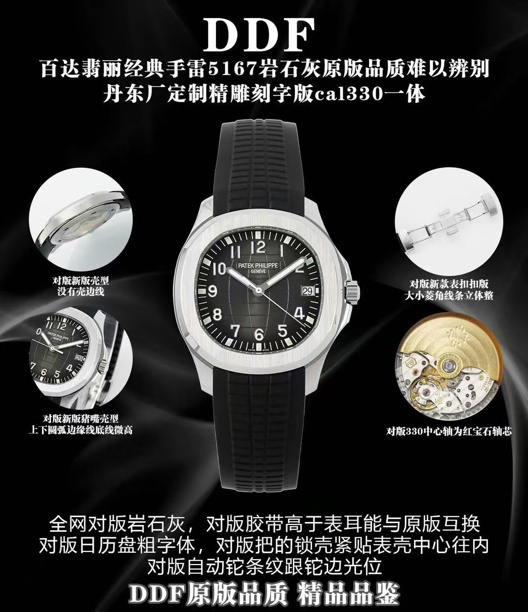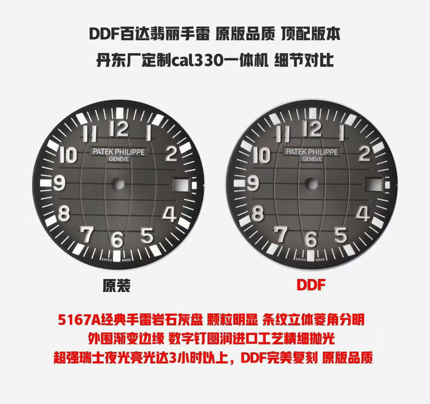 DDF 百达翡丽经典手雷5167岩石灰原版品质难以辨别腕间魅力丹东厂定制精雕刻字版cal330一体,对版胶带高于表耳能与原版互换,对版日历盘粗字体,对版把的锁壳紧贴表壳中心往内