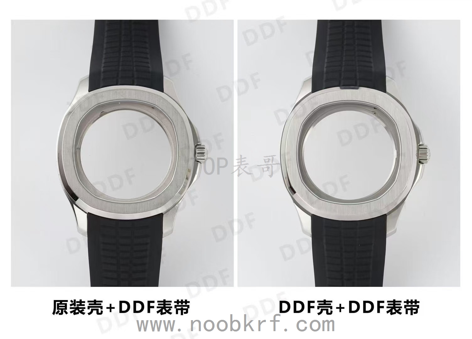 DDF 壳 + DDF 表带:DDF 表壳与自家表带的适配性更统一,表带的柔软度和表壳的衔接处处理到位,整体风格协调,在复刻版本的表带适配中属于顶级表现。