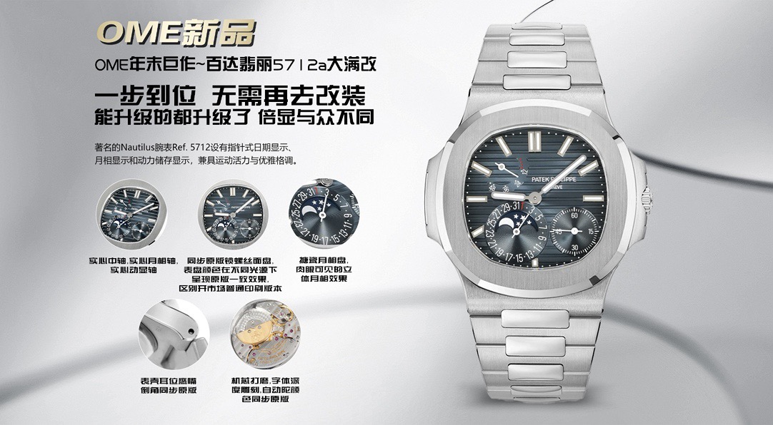 hello,大家好,我是TOP表哥,今天带给大家的腕表对比评测来自OME工厂的百达翡丽鹦鹉螺5712A。