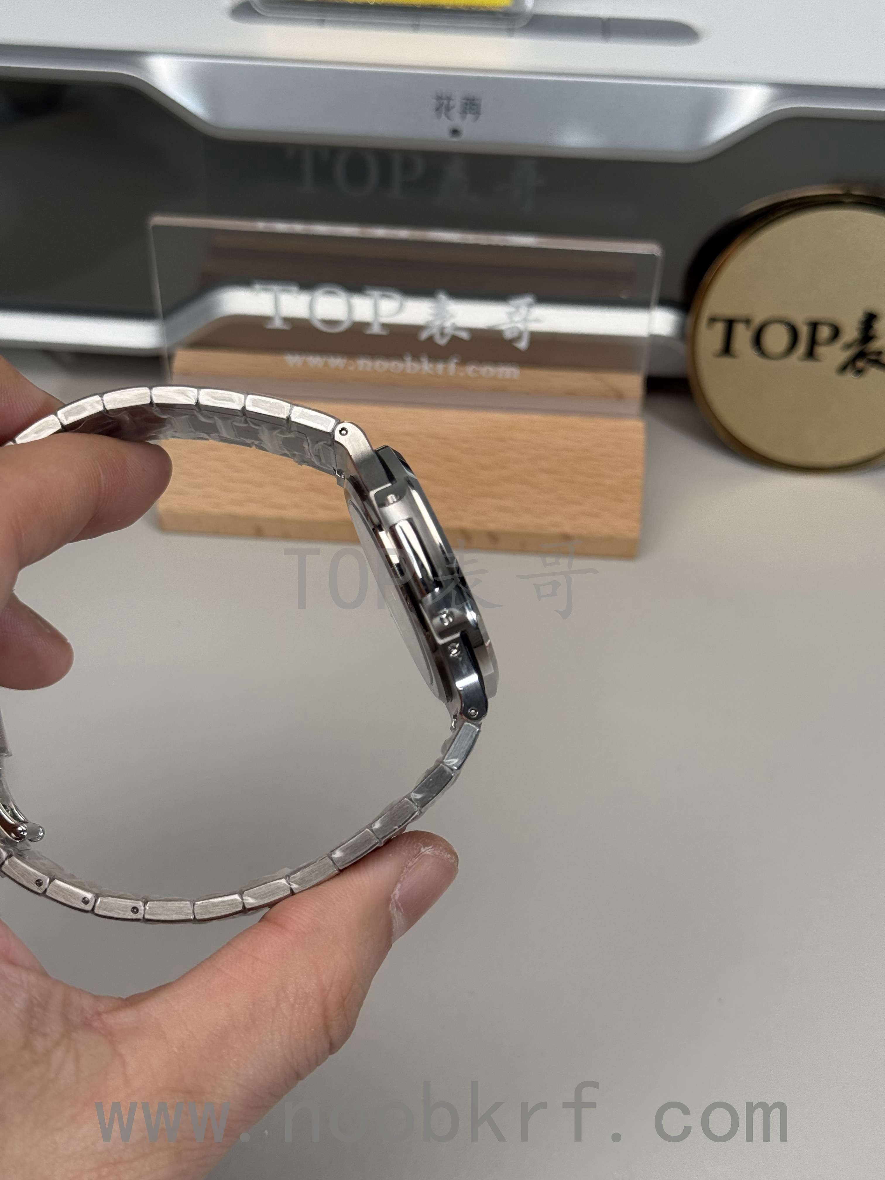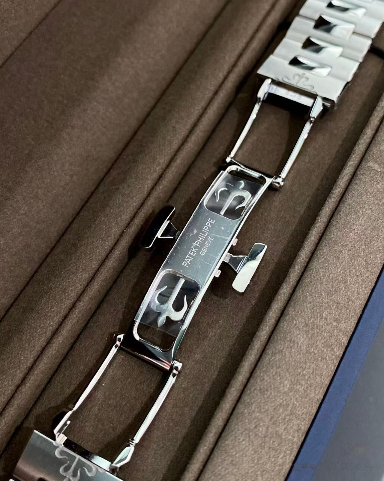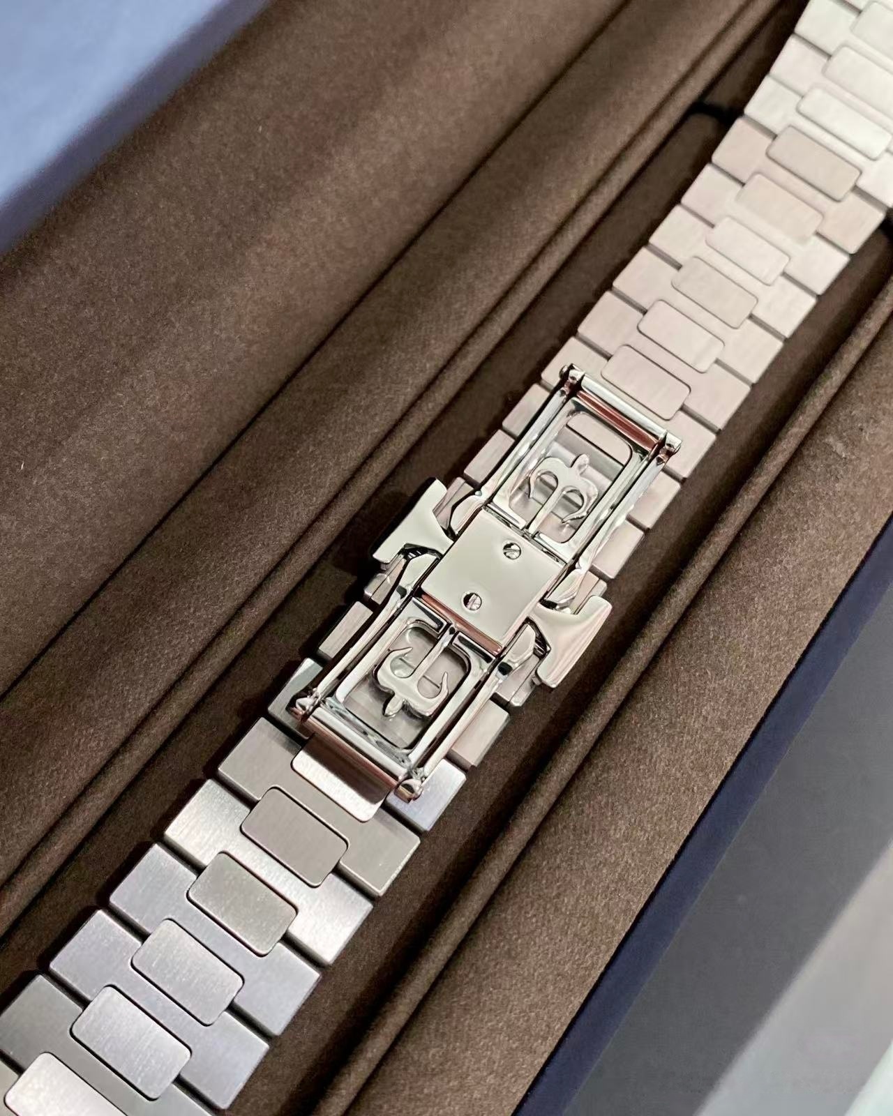 下面两图为正品百达翡丽鹦鹉螺的5712A新版本表扣的图片实拍,相信大家通过对比是很容易发现差异出来的。