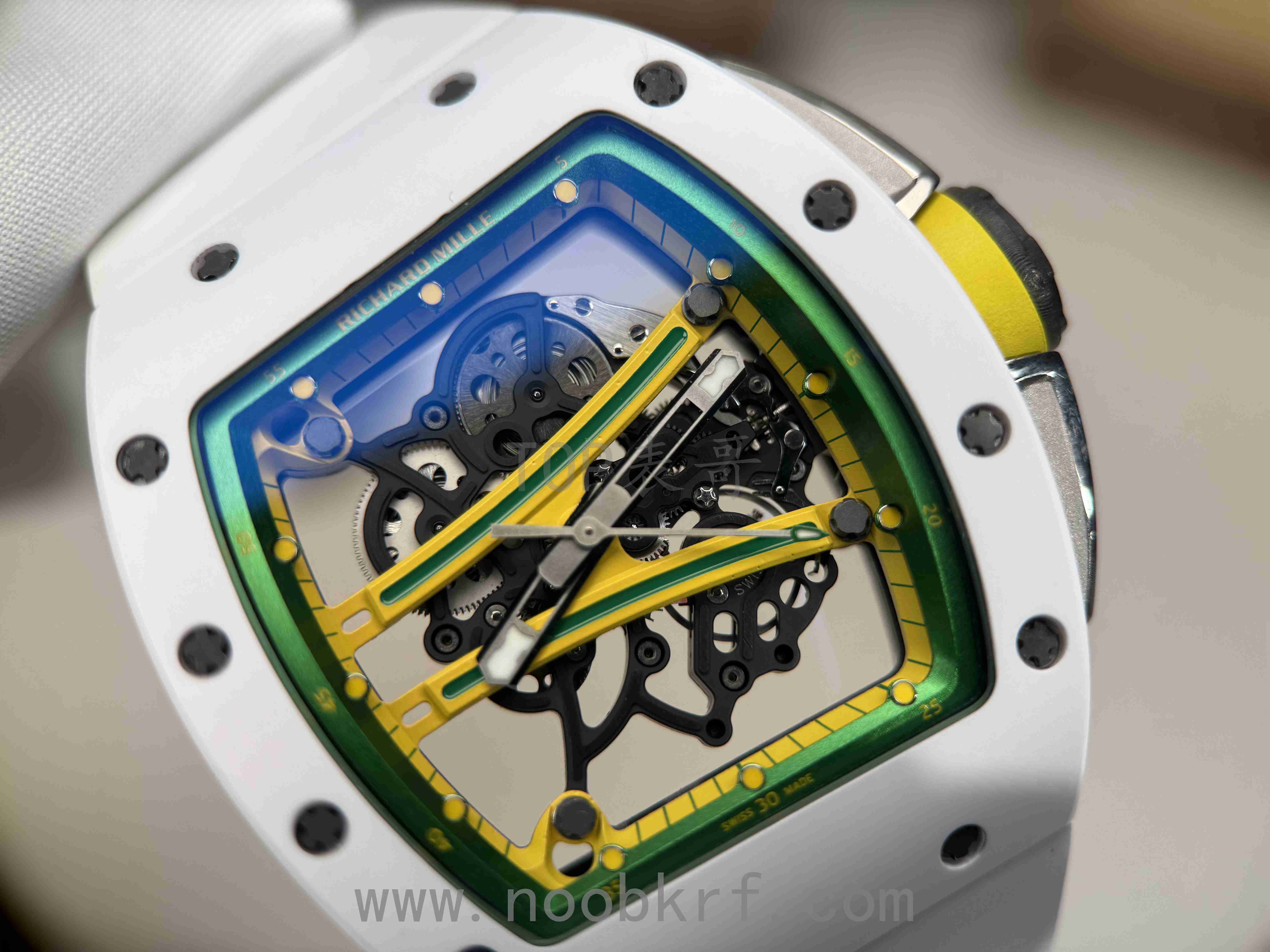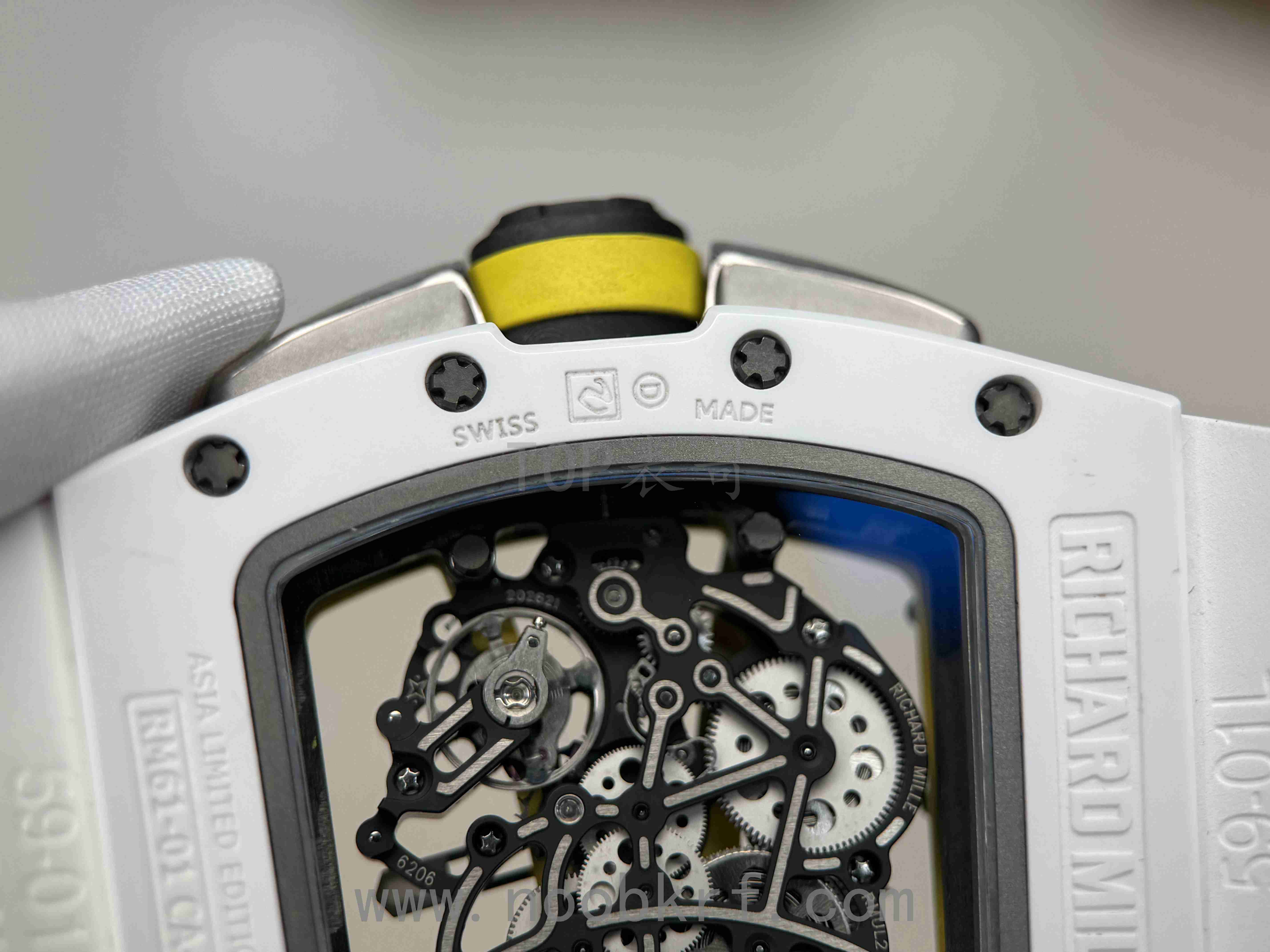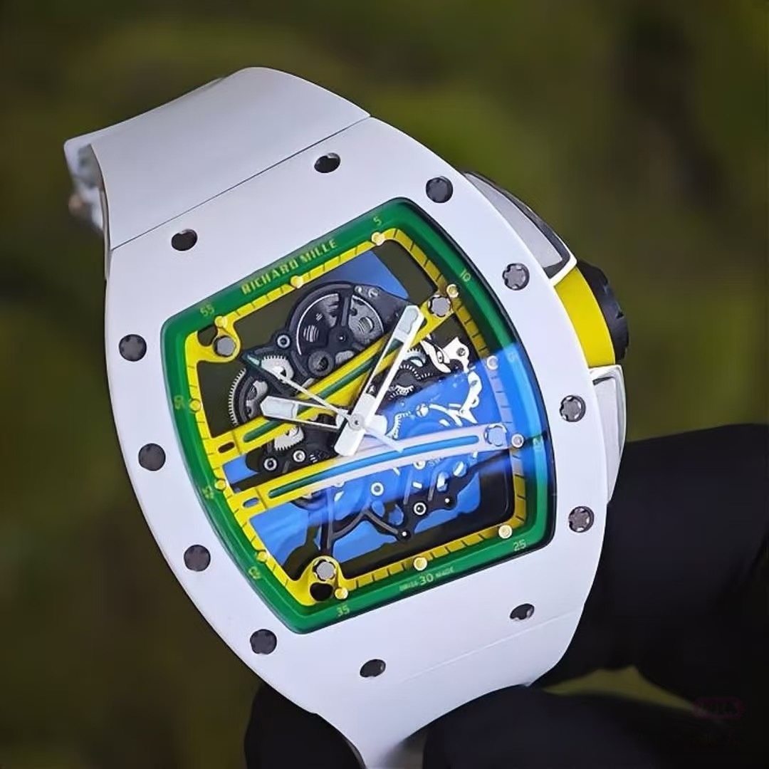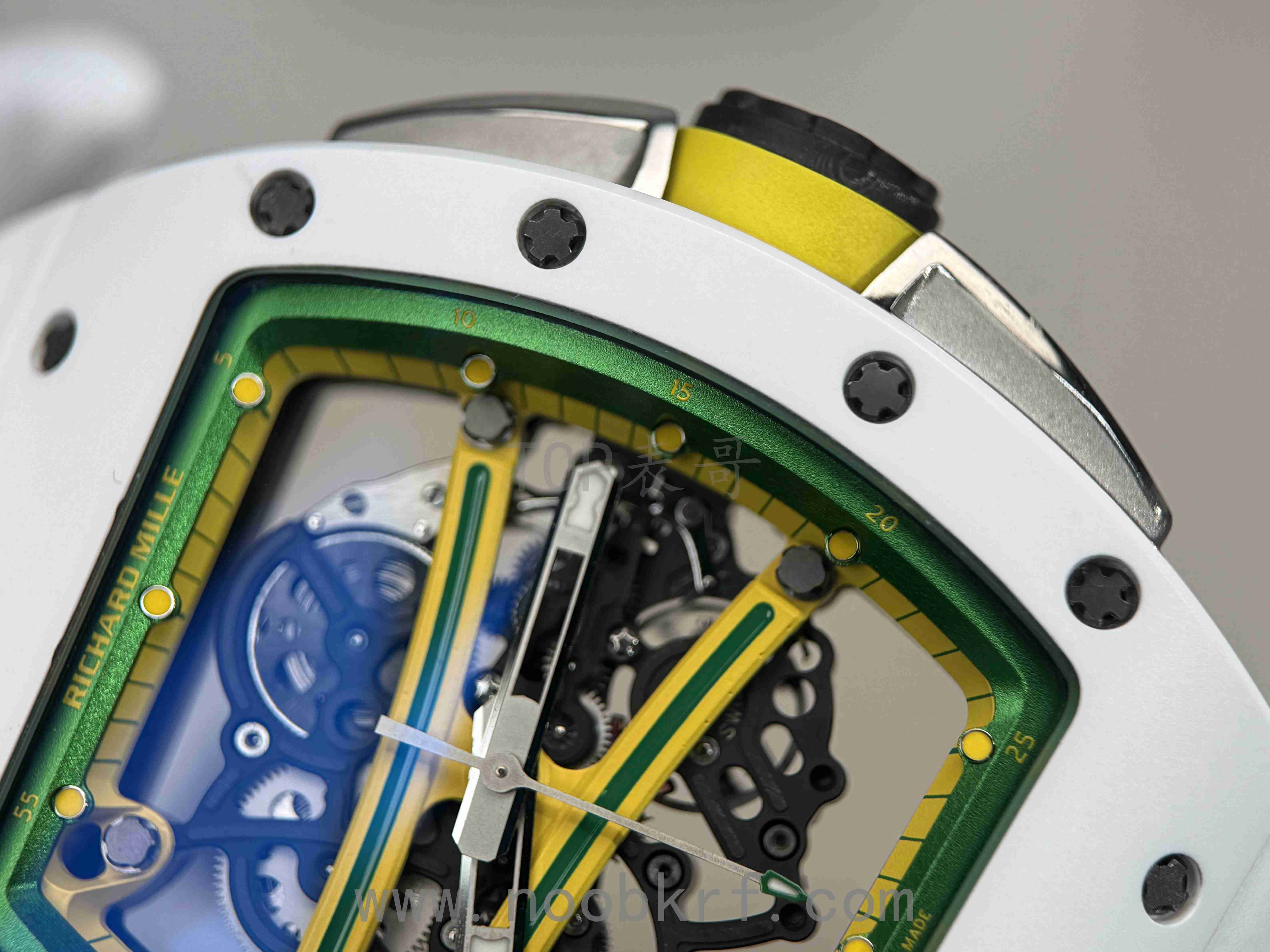 理查德米勒 RM 61-01 白陶瓷绿跑道腕表,正式名称为RM 61-01 Yohan Blake 白陶瓷款,是品牌为牙买加短跑名将尤罕・布雷克(Yohan Blake,绰号 "野兽")专属打造的标志性运动腕表,以独特的白陶瓷材质与荧光绿 "跑道" 设计成为收藏家追捧的热门款式。
