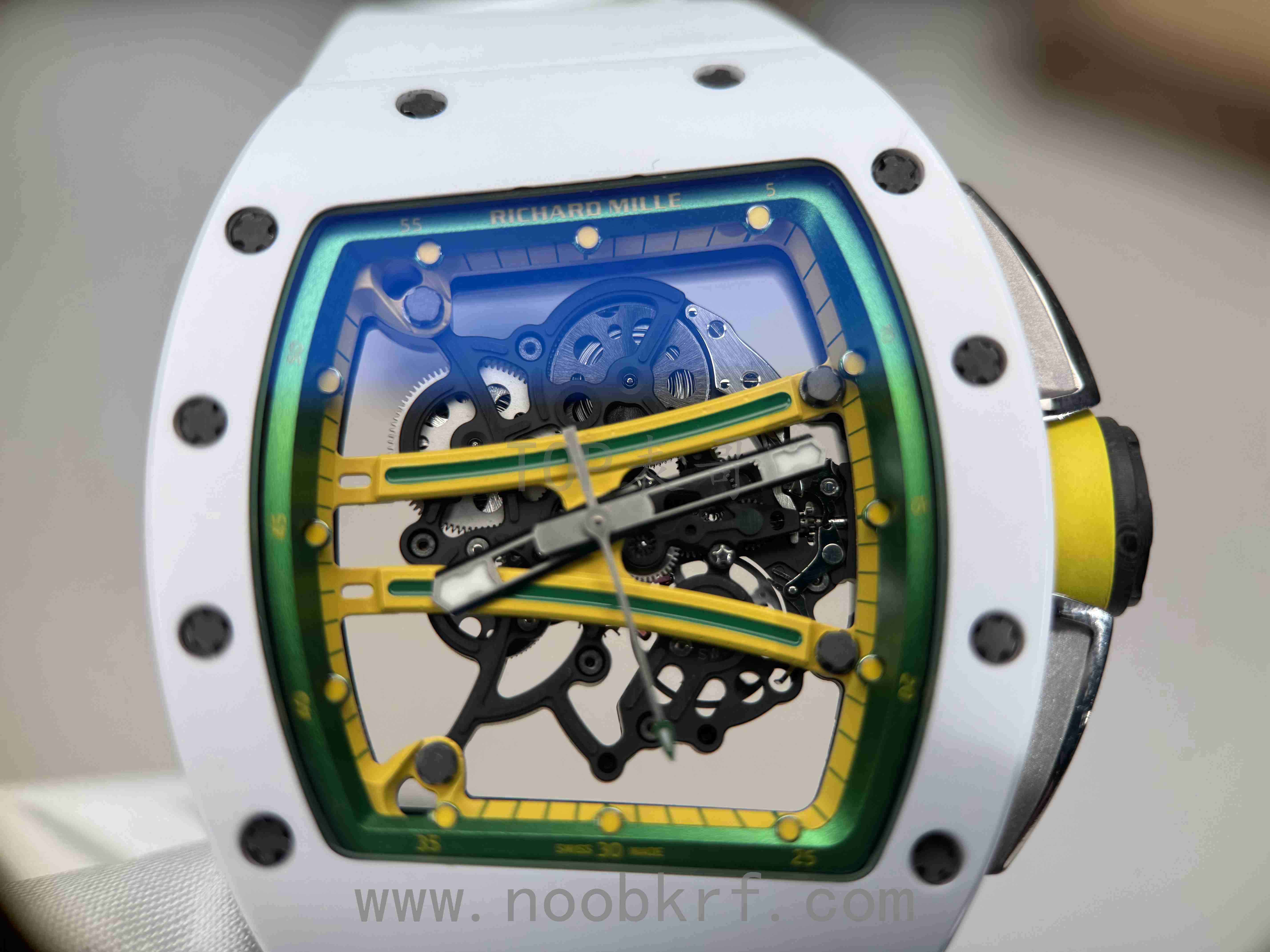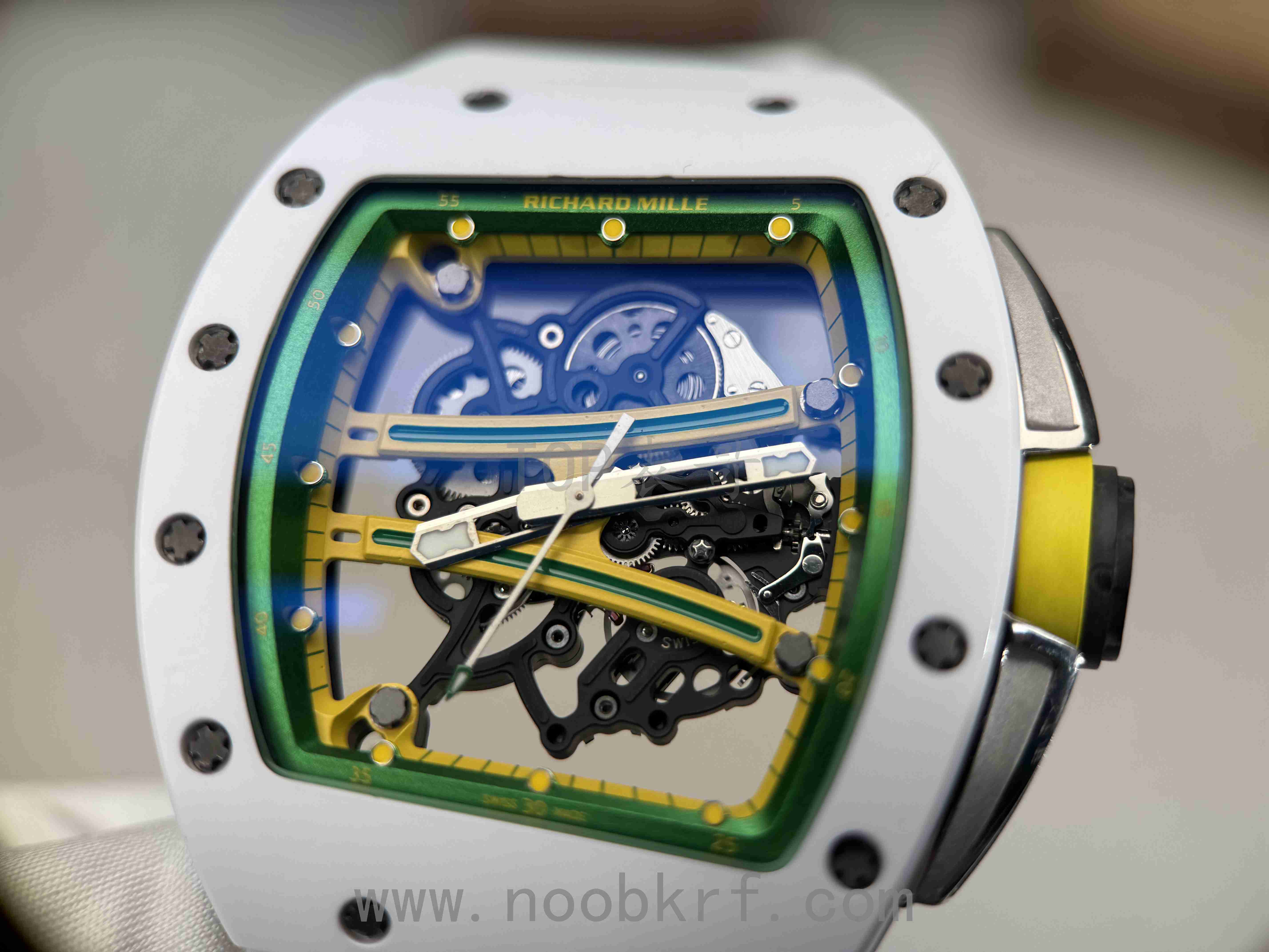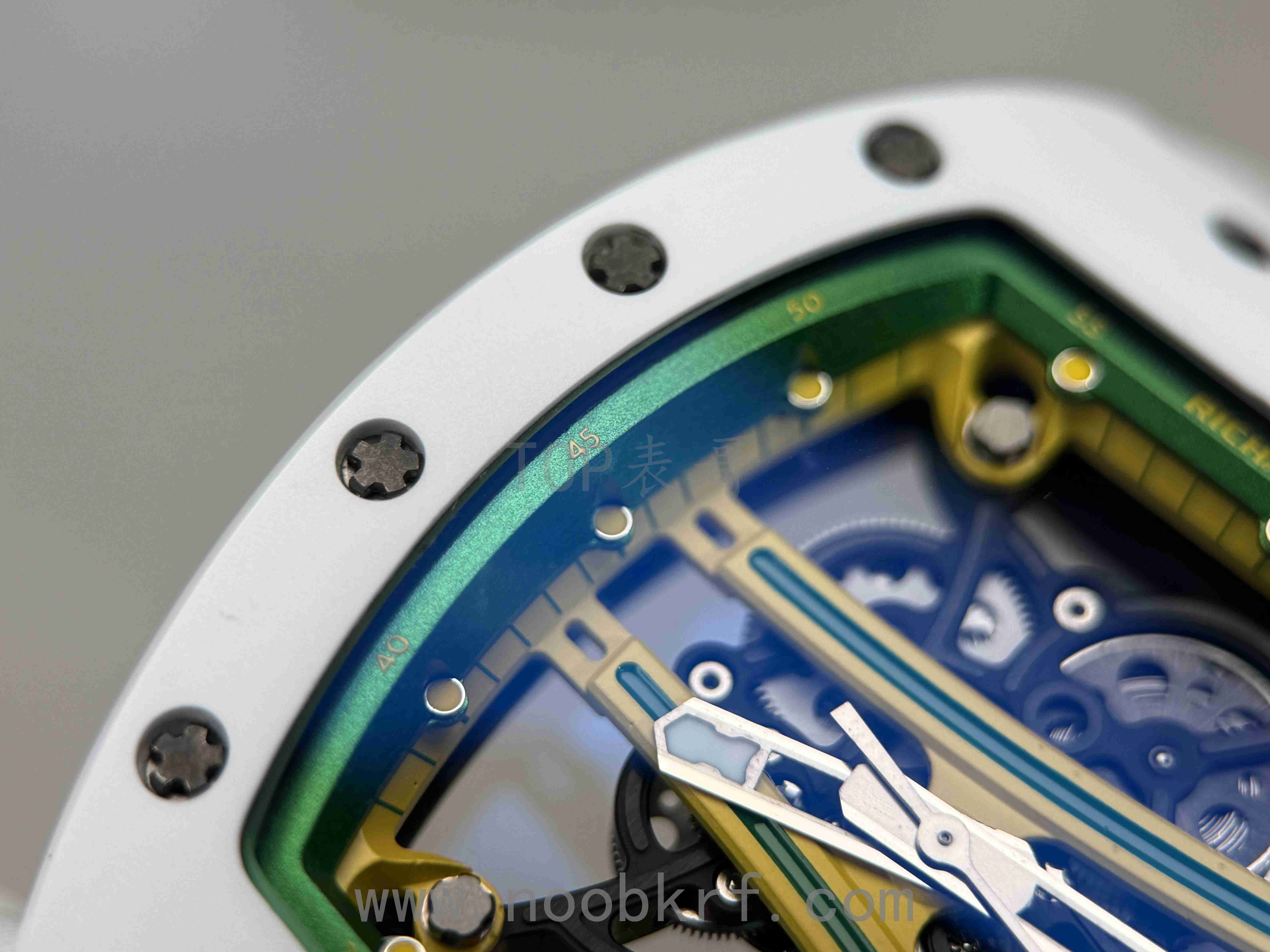 理查德米勒 RM 61-01 白陶瓷绿跑道腕表,正式名称为RM 61-01 Yohan Blake 白陶瓷款,是品牌为牙买加短跑名将尤罕・布雷克(Yohan Blake,绰号 "野兽")专属打造的标志性运动腕表,以独特的白陶瓷材质与荧光绿 "跑道" 设计成为收藏家追捧的热门款式。