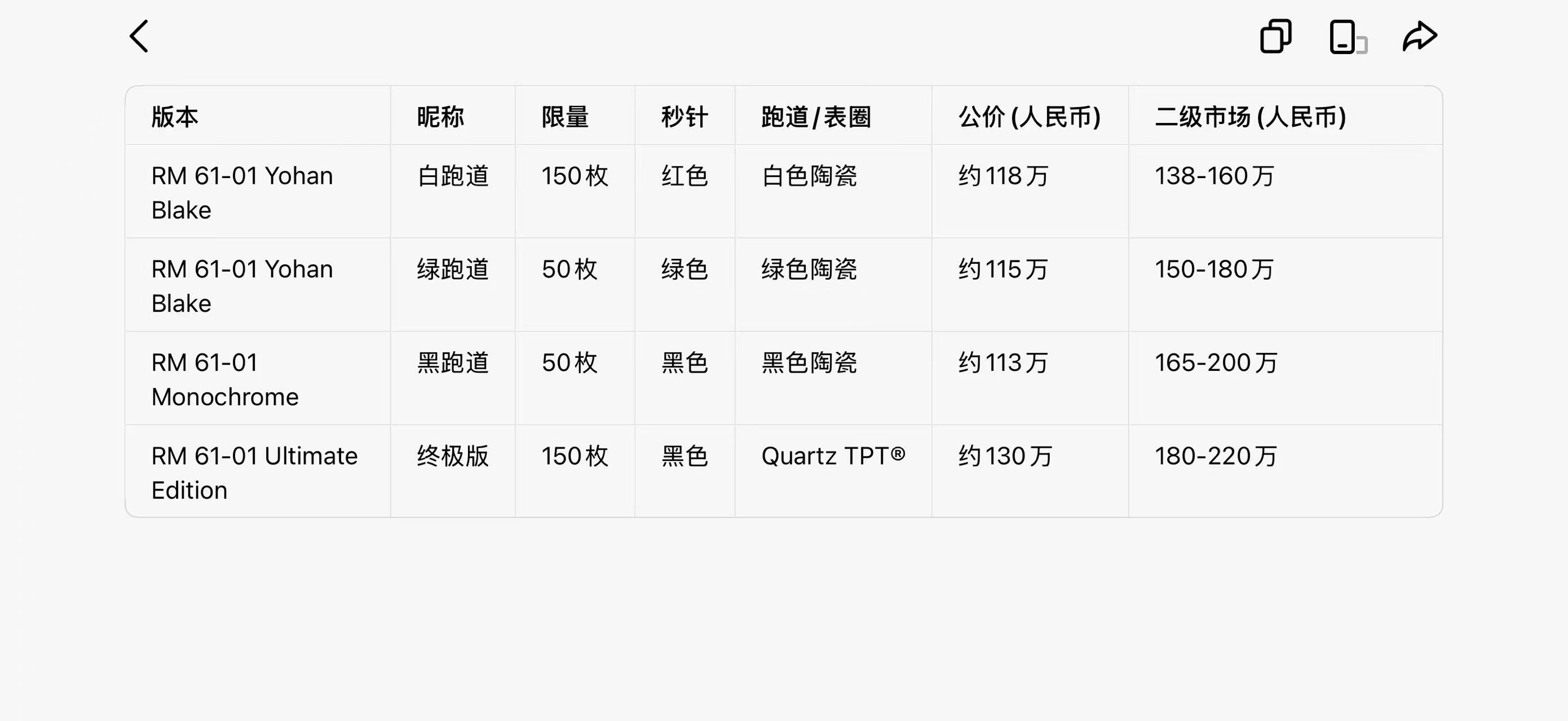 此外还有黑陶瓷绿跑道基础款(限量 100-150 枚),但白陶瓷版本更为稀有珍贵。