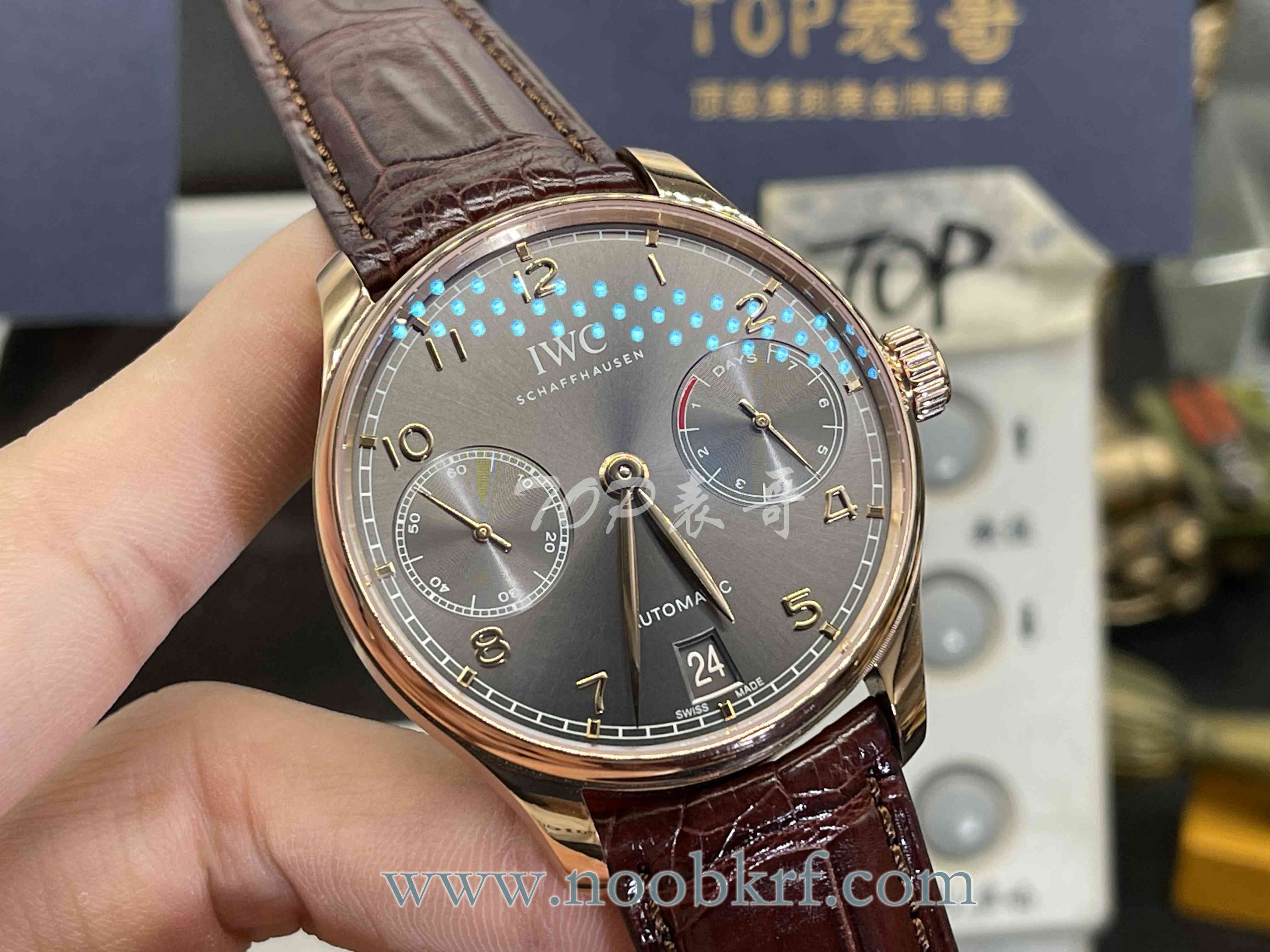 hello,大家好,我是TOP表哥。今天带给大家的腕表评测来自ZF工厂的万国葡萄牙七日链系列,玫瑰金表壳灰盘,官方型号:IWC万国表葡萄牙系列IW500702腕表。